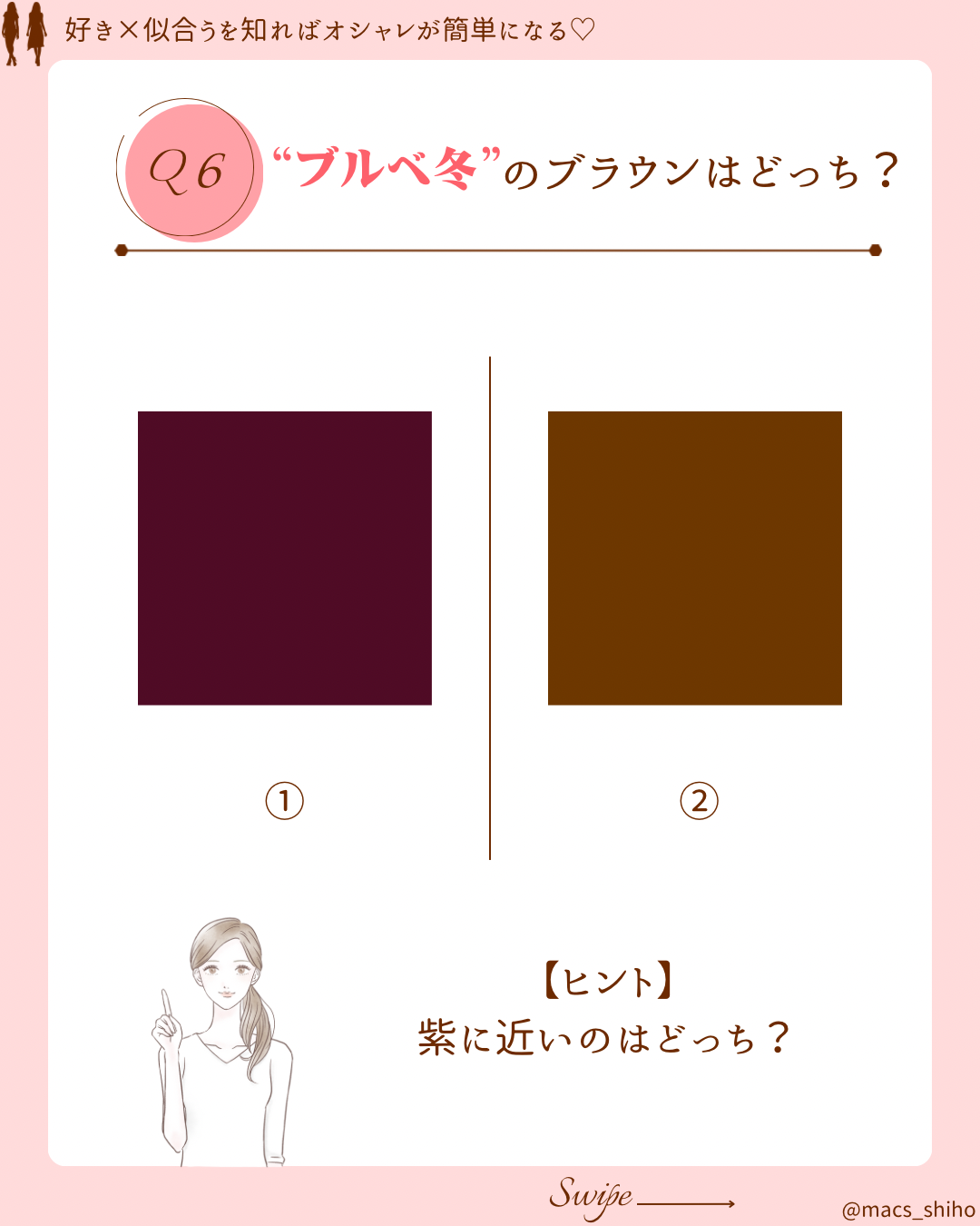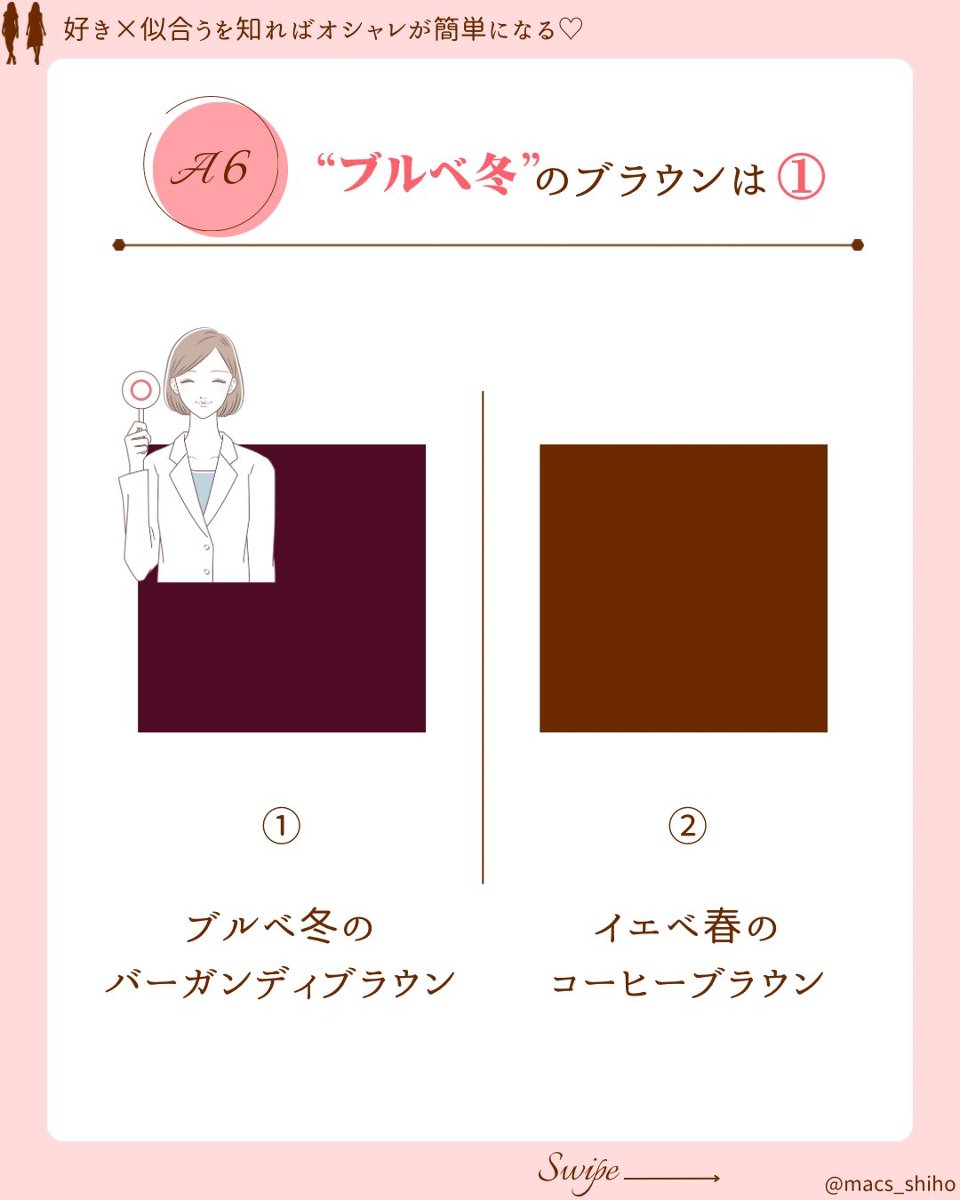 - ○ Q6:ブルベ冬のブラウンはどっち?