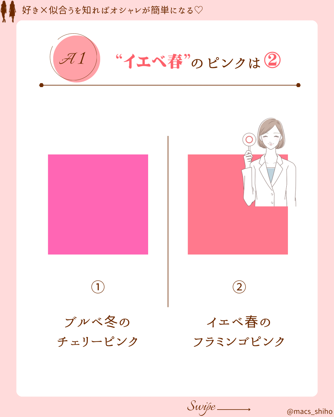 「春のフラミンゴピンク=鮮やかでヘルシーな黄みピンク」