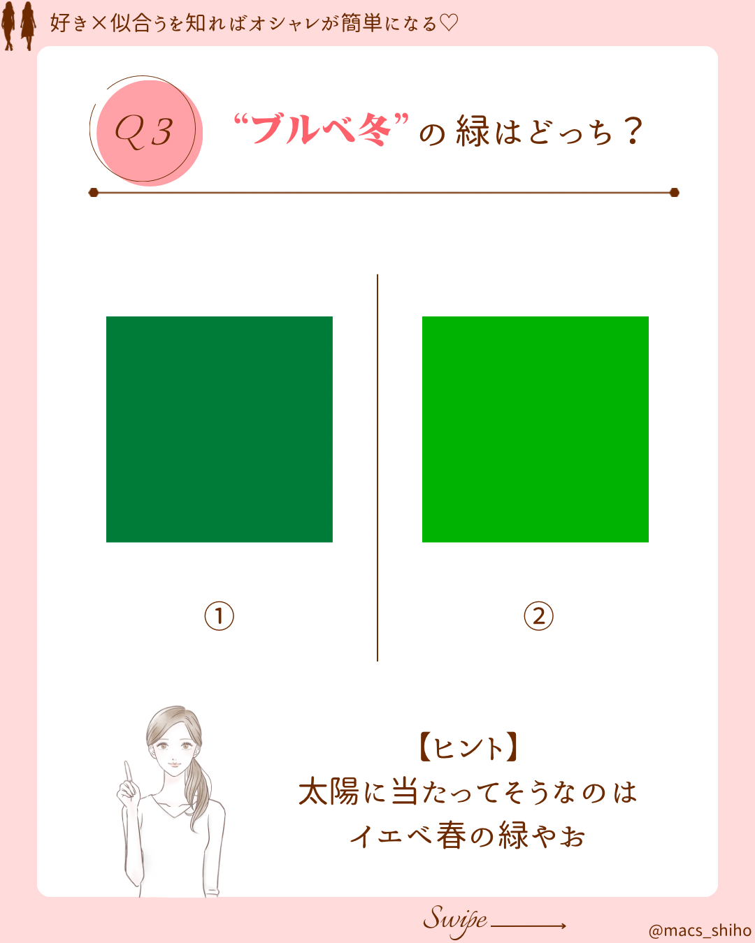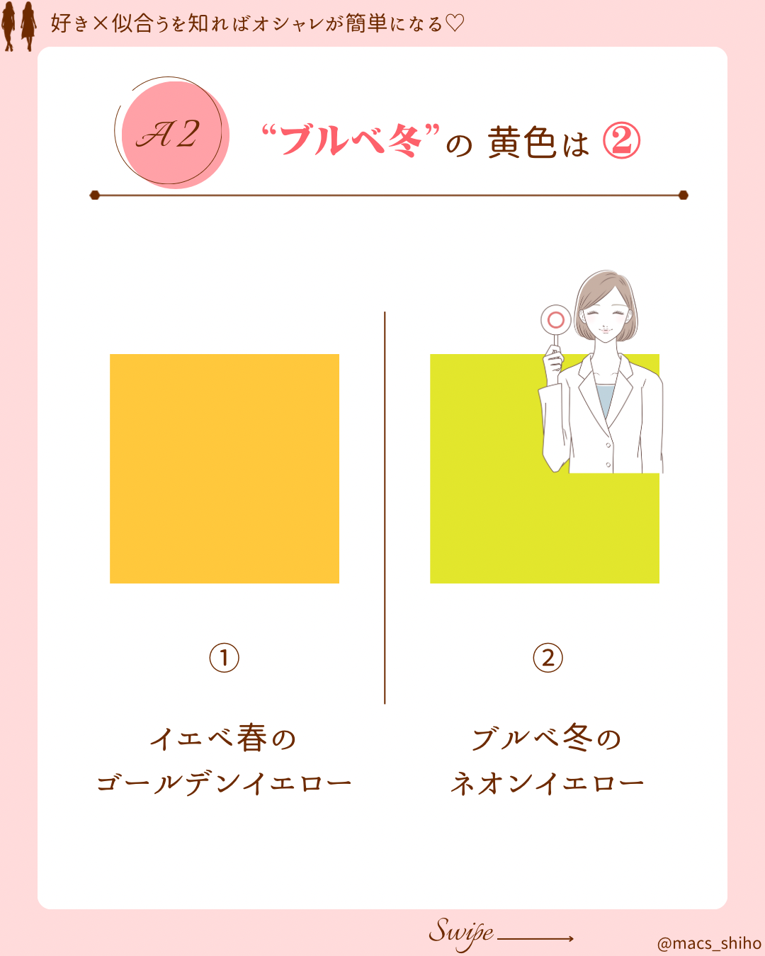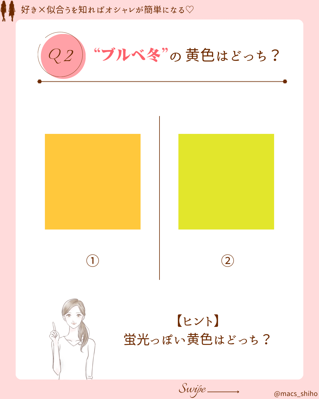 - ○ Q2:ブルベ冬の黄色はどっち?