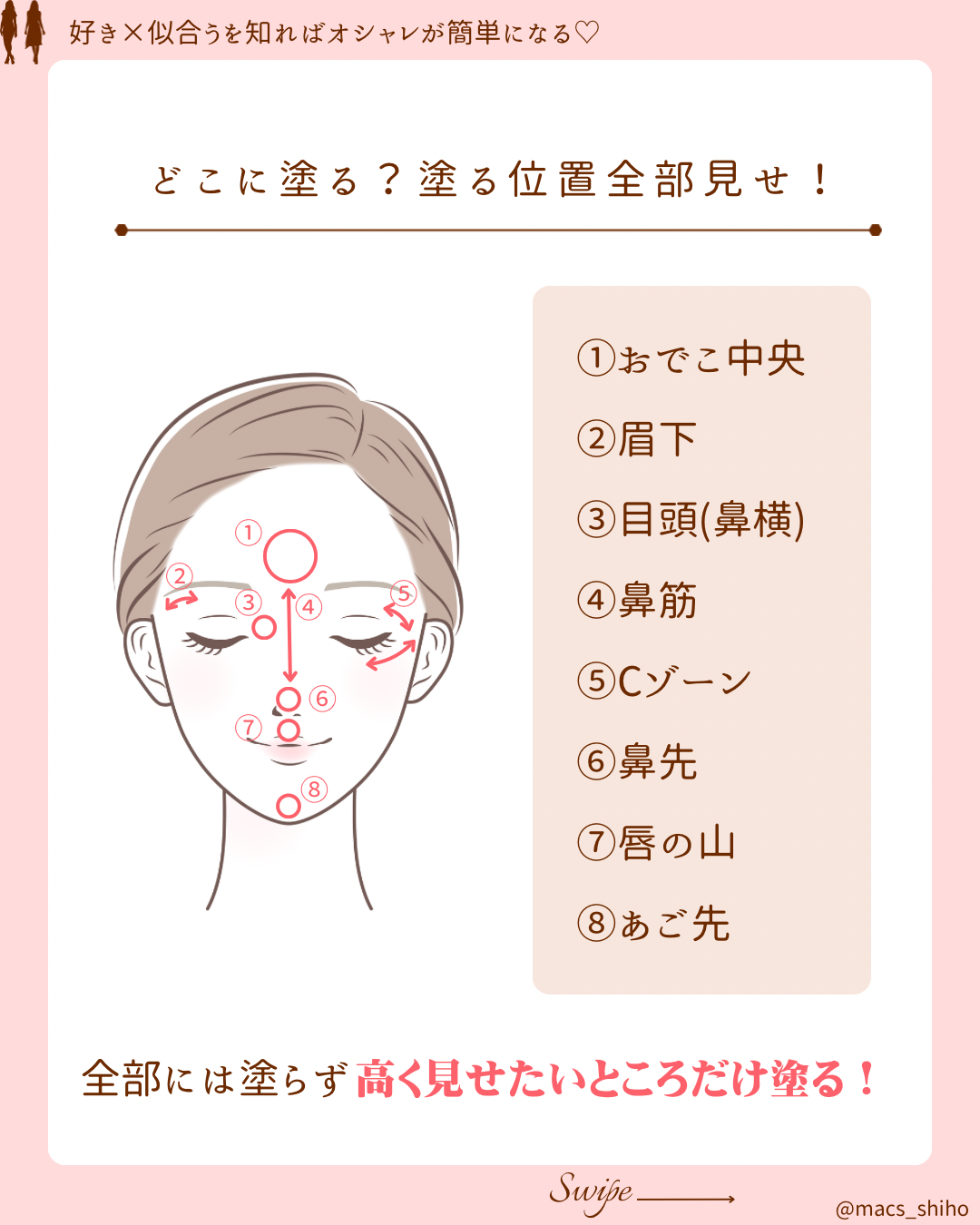 全部に塗るとくどくなりすぎるので、必要なところだけでOK!