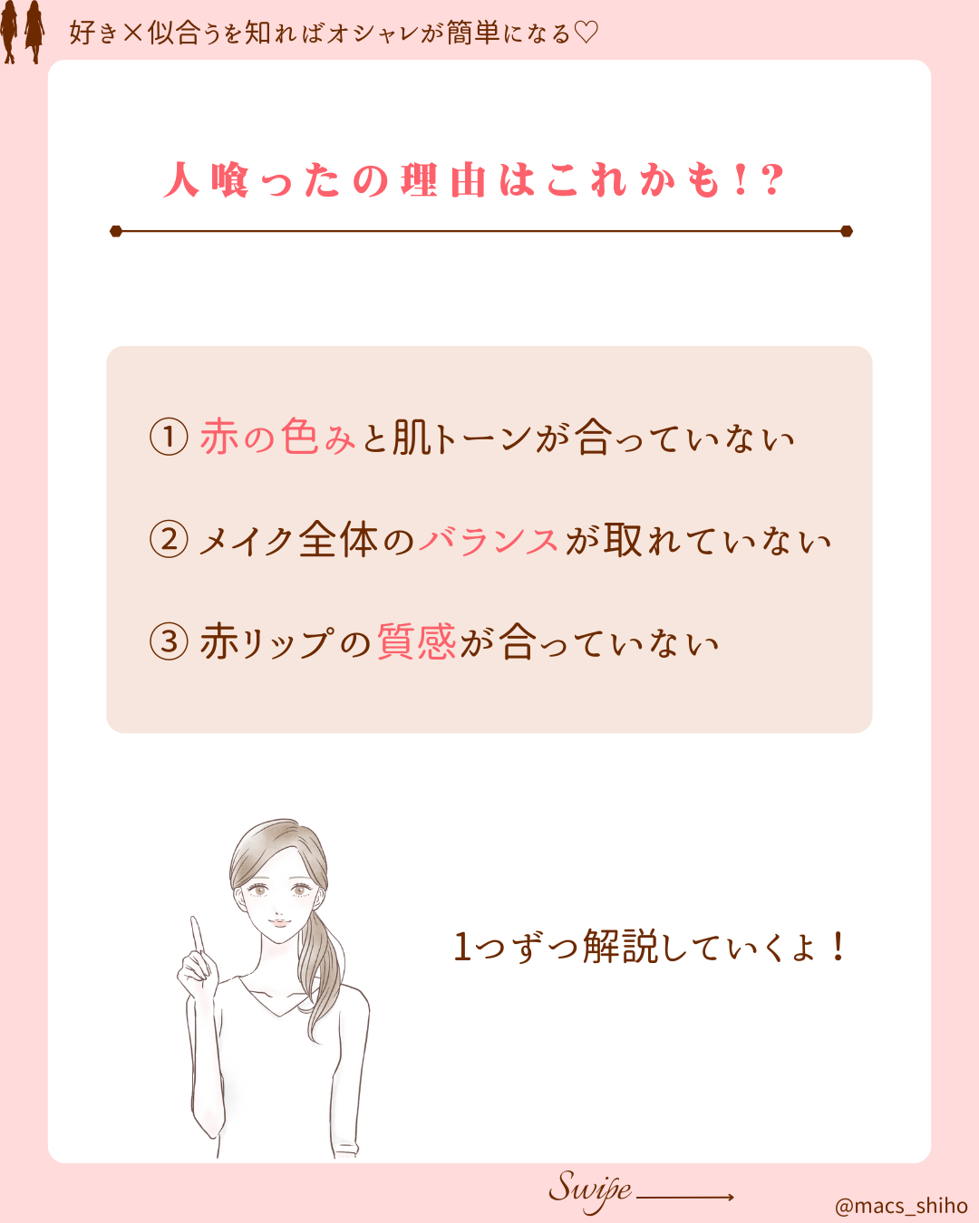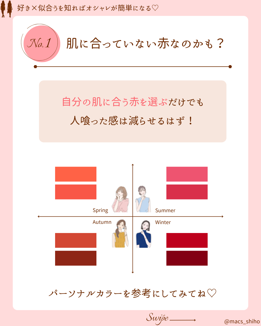 - ○ ①肌に合っていない赤なのかも?パーソナルカラーで選ぶのが近道!
