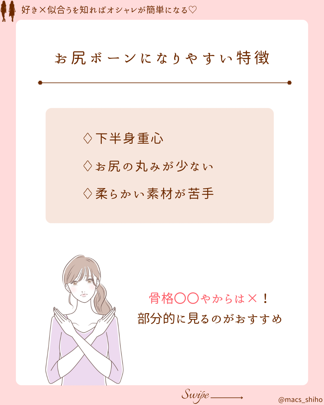 - ○ お尻ボーンは“似合わない”じゃなくて“バランスの問題”!
