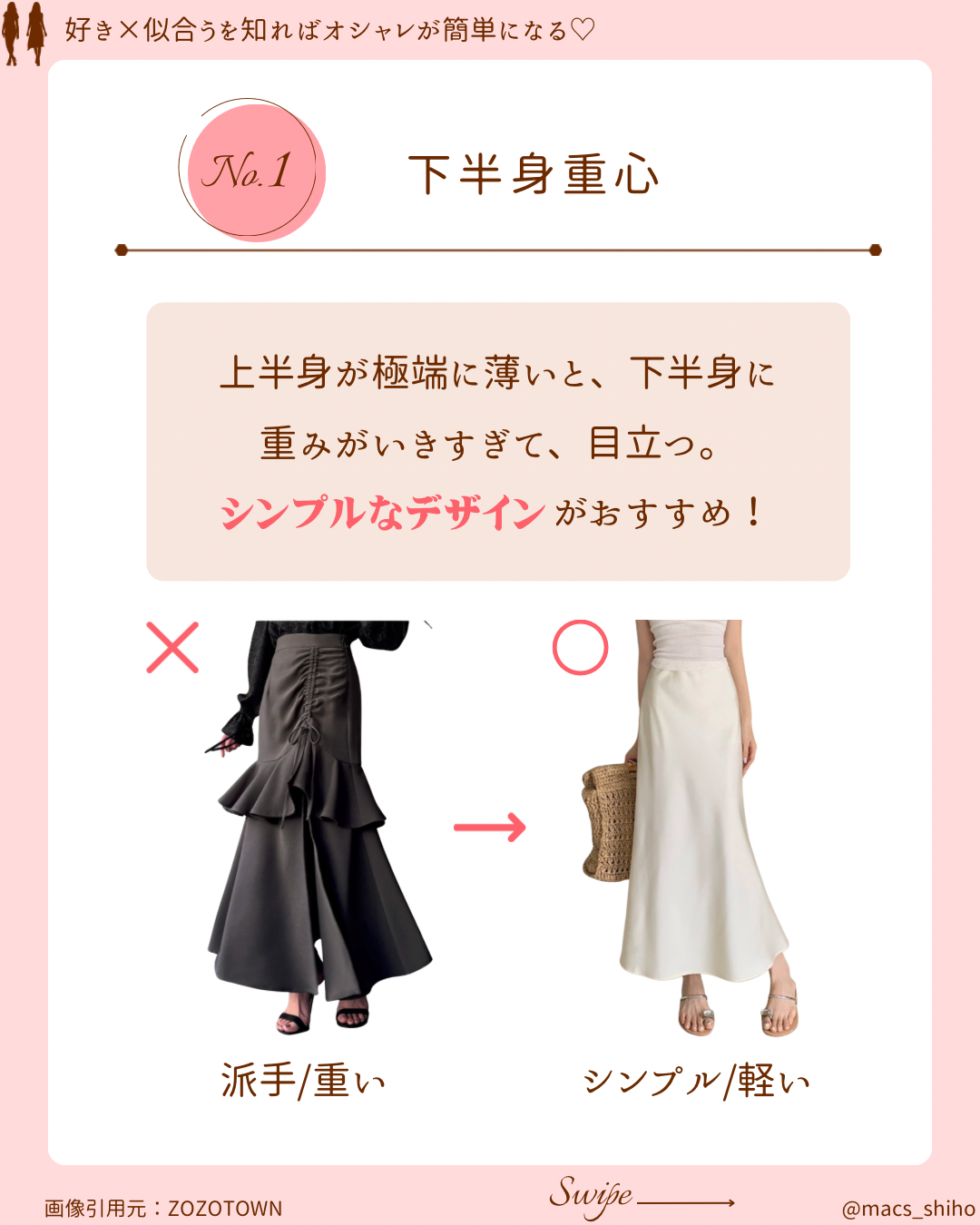 ① 下半身重心さんは“シンプルデザイン”で重心バランスを整えて