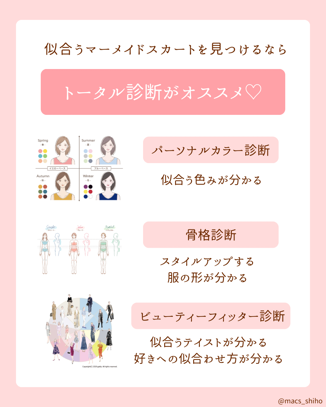 - ○ 似合うマーメイドスカートを見つけるなら“トータル診断”が近道!
