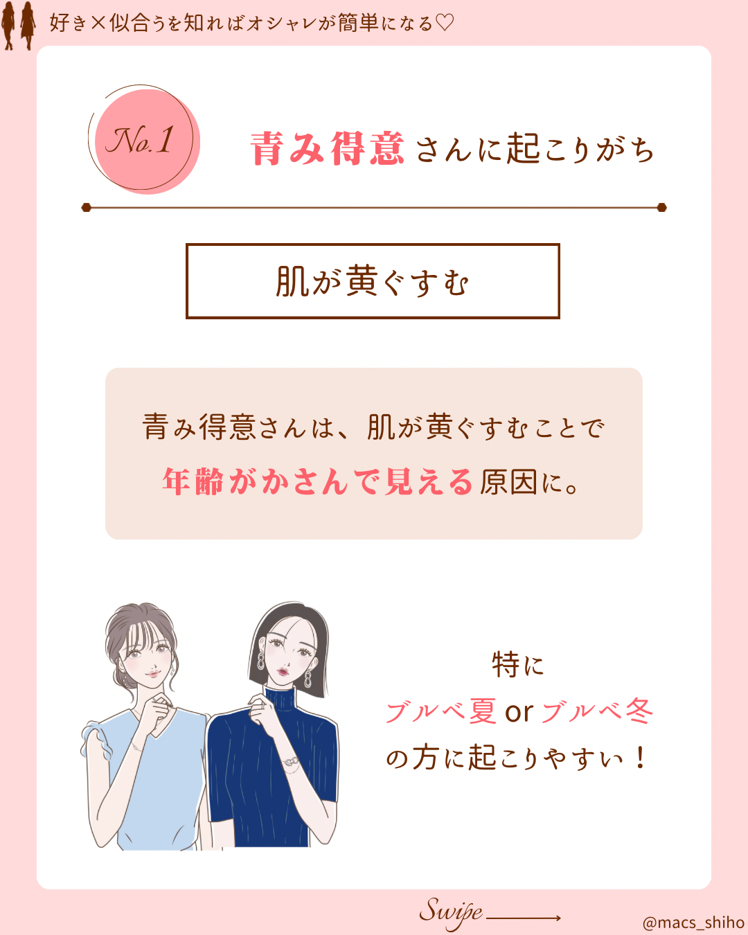 - ○ 肌が黄ぐすむ!ブルベさんに起こりやすい老け見え原因