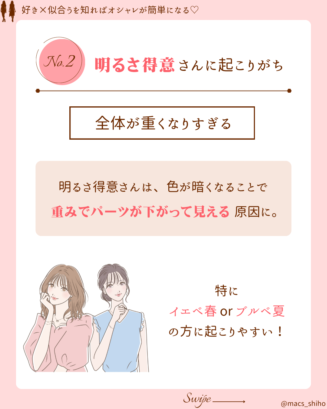 - ○ 全体が重くなりすぎる!明るめカラーが得意な人は注意