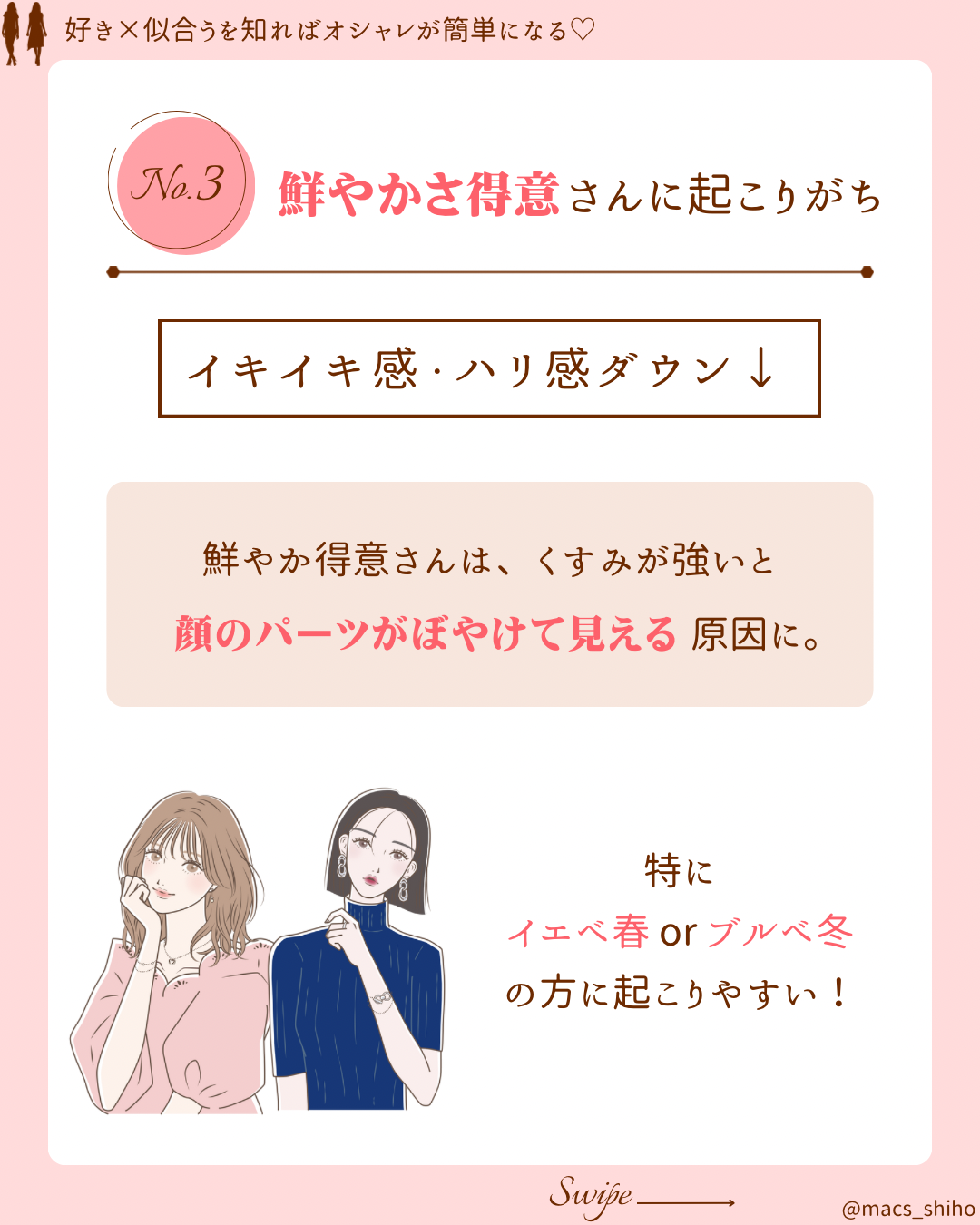 - ○ イキイキ感・ハリ感がなくなる!鮮やかカラーが得意な人は要注意