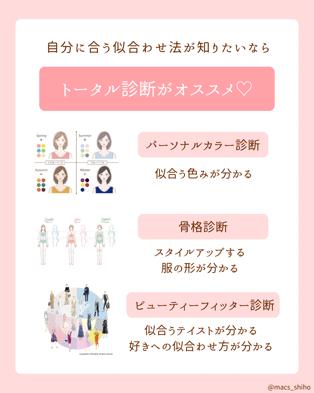 そんなときに頼れるのが、トータル診断(パーソナルカラー+骨格+顔)