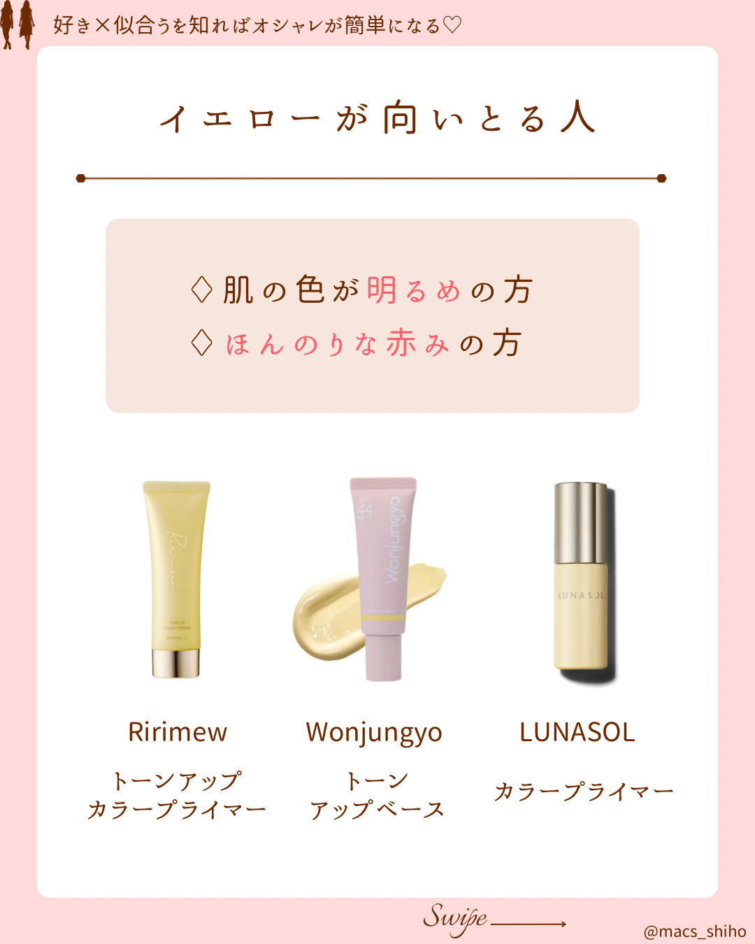 ♢明るめ肌&ほんのり赤み → イエロー