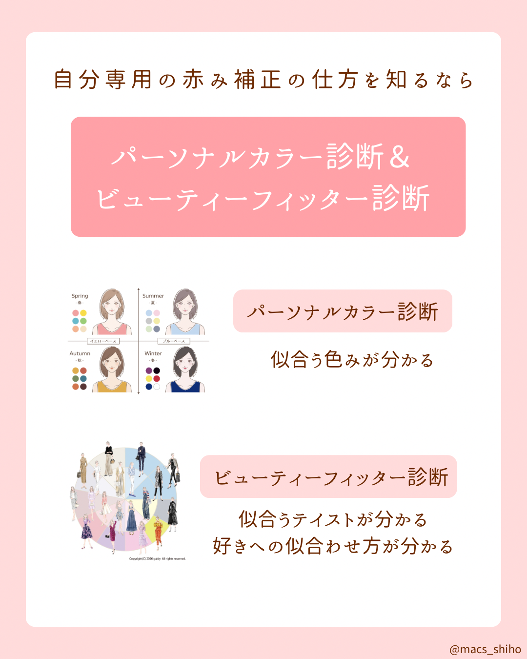 パーソナルカラー診断とビューティーフィッター診断をチェックしてみてくださいね♡