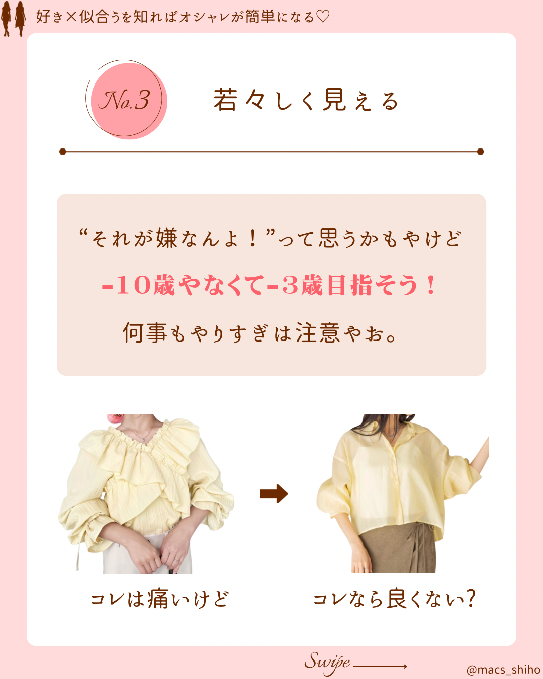 - ○ パステルカラーを着ると痛いままに見える?という不安