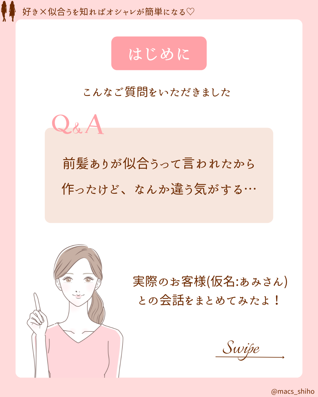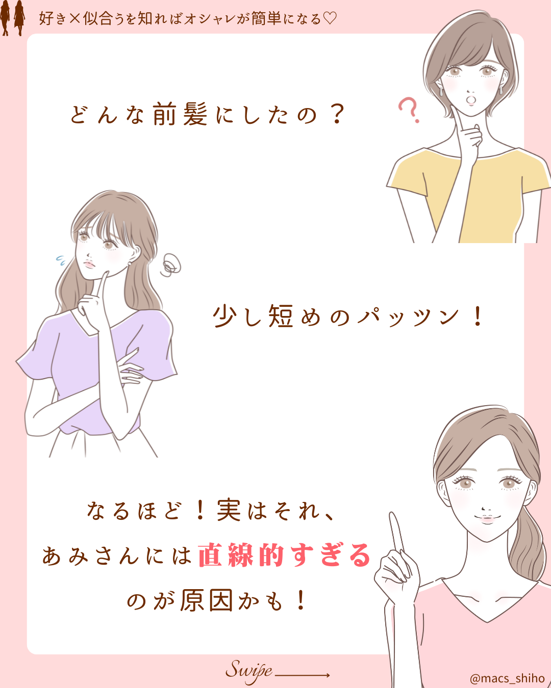 - ○ “前髪が変”の原因は、前髪の種類が合ってないだけ!
