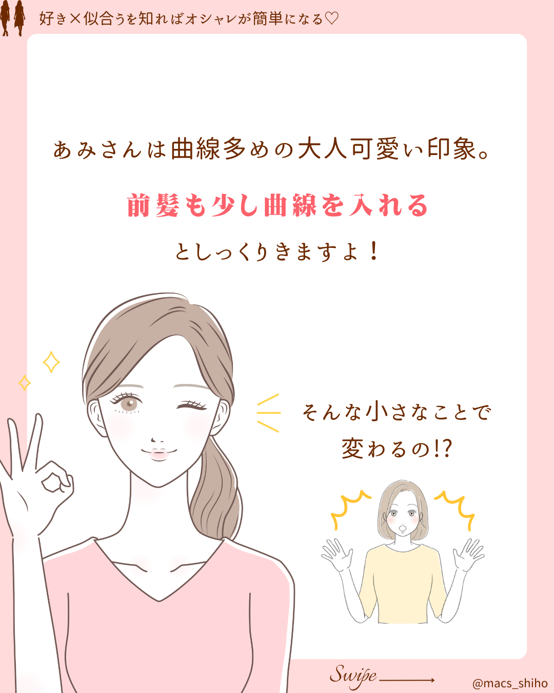 - ○ あみさんは曲線多めの“大人可愛い”印象