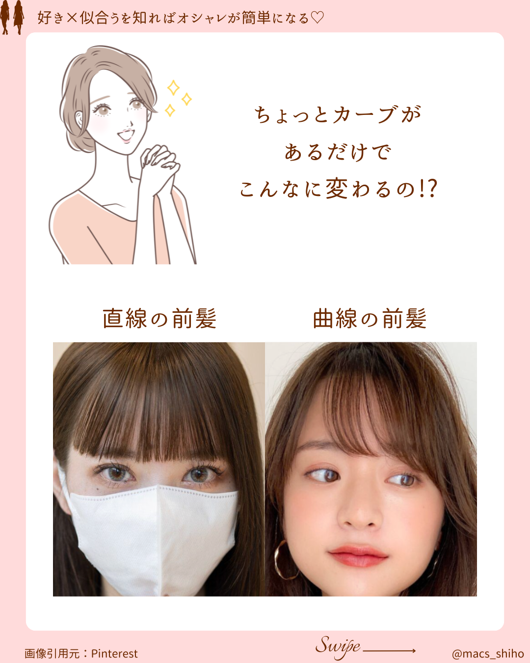 直線が似合うタイプ・曲線が似合うタイプ があるから、前髪もそこに合わせるのが重要です。
