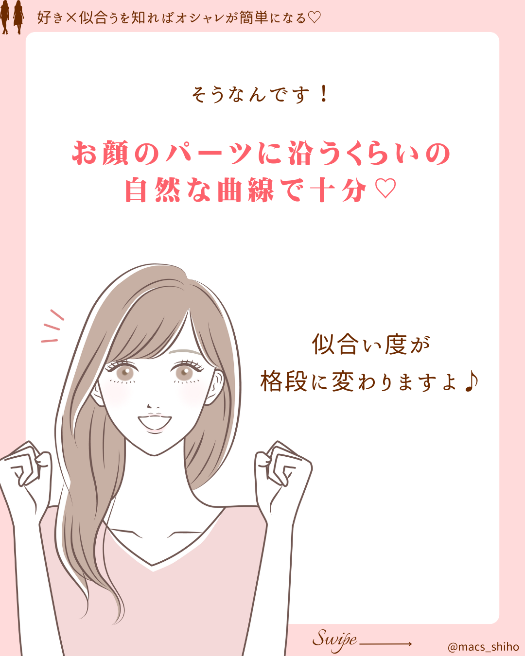 - ○ 似合い度は“自然な曲線”だけで劇的に変わる!