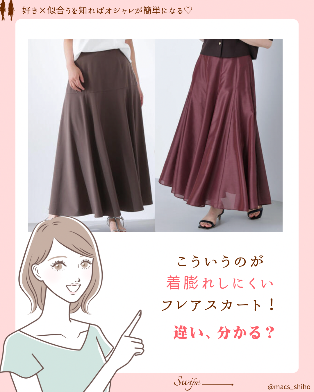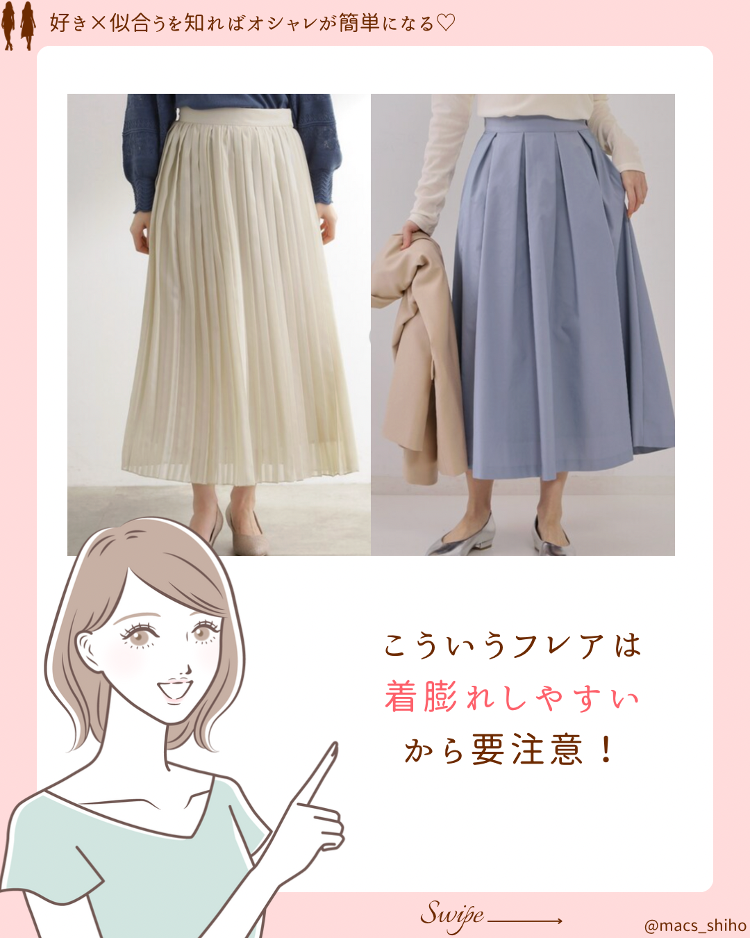 フレアスカートで着膨れする原因はここ!骨格ストレートでも細見えする選び方